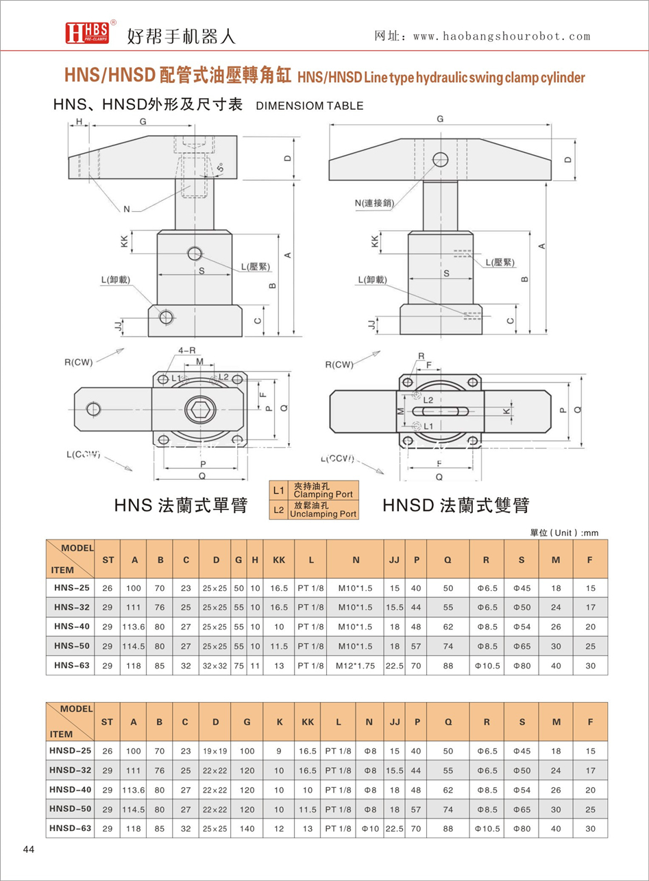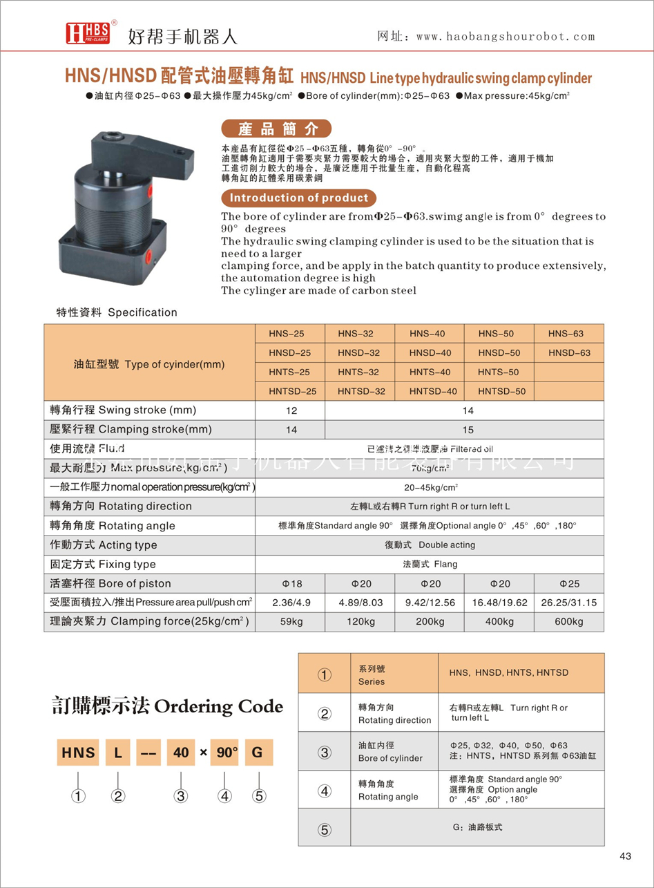 • HNS/HNSD 油壓轉(zhuǎn)角缸 NHS/NHSD/NHTS/NHTSD