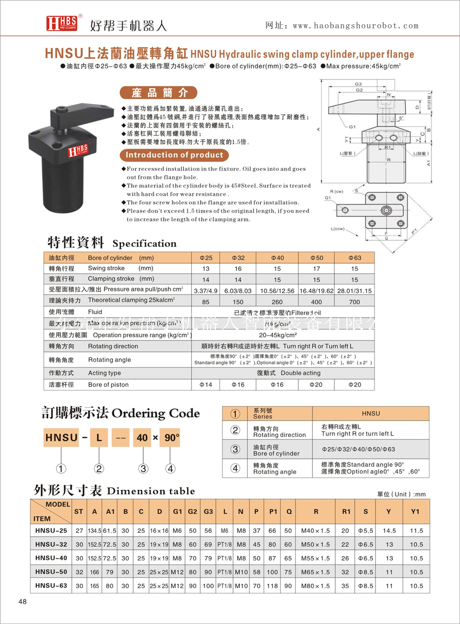 • HNSU 上法蘭型油壓轉(zhuǎn)角缸,NHSU,HNSU