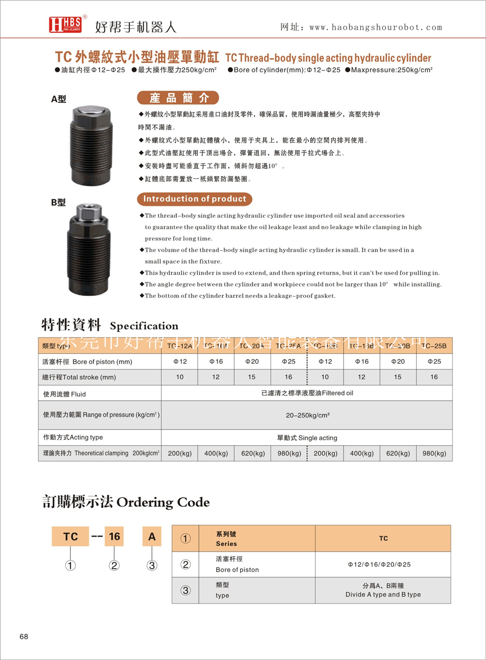 • TC 外螺紋式小型油壓?jiǎn)蝿?dòng)缸 ,CTC HTC