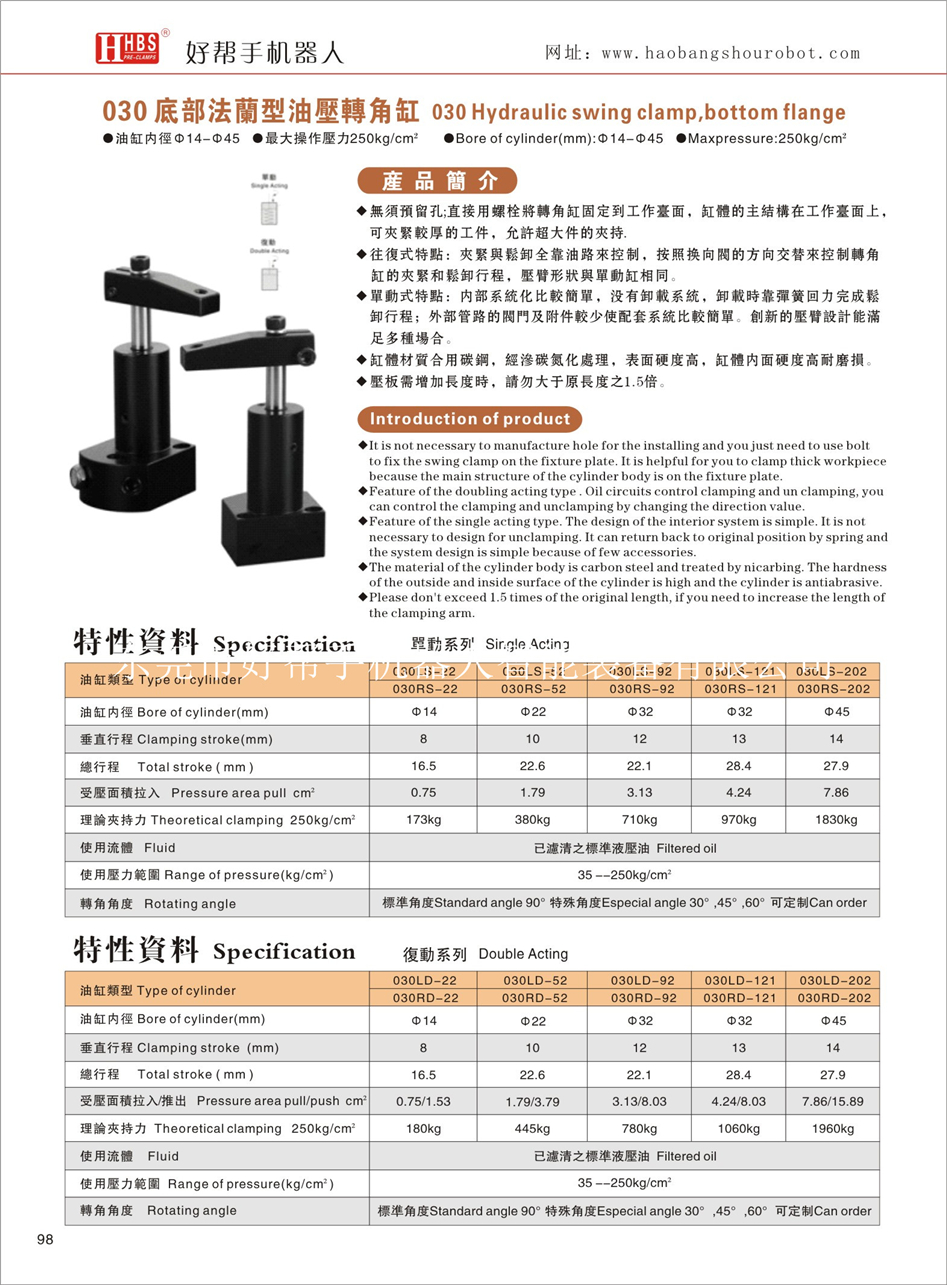 底部法蘭型油壓轉(zhuǎn)角缸 好幫手機(jī)器人專業(yè)生產(chǎn)油缸氣缸