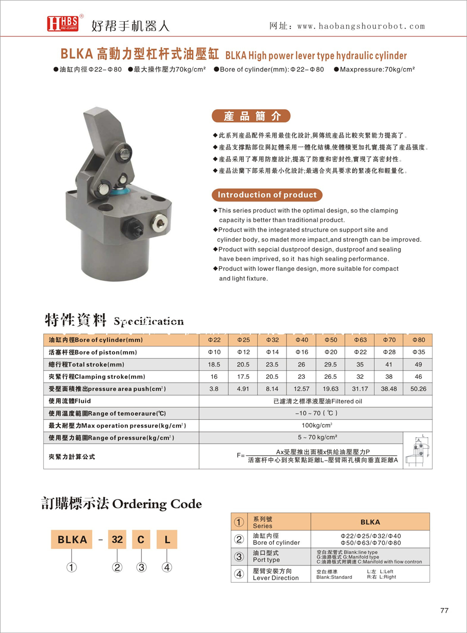 • BLKA 高動力/紮實型槓桿式油壓缸, HLKA,CLKA
